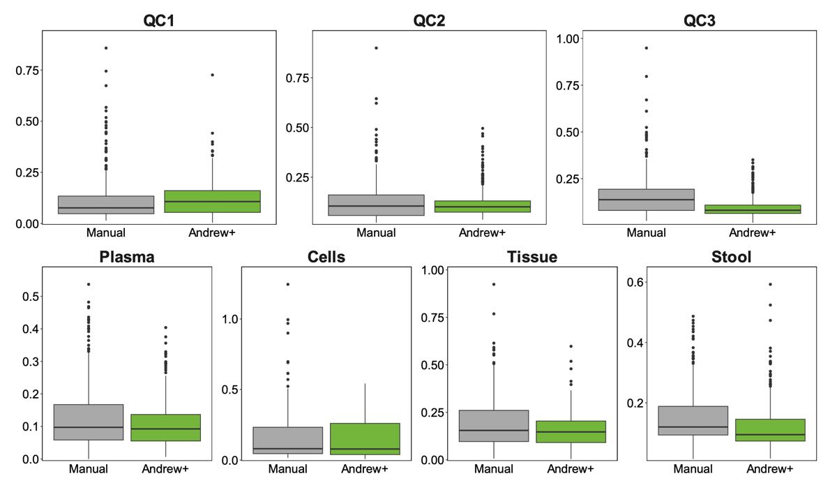 High throughput metabolomic profiling using the biocrates MxP® Quant 500 kit can be efficiently achieved with automated sample preparation by the Waters Andrew+ pipetting robot. This automation yields results comparable to manual preparation in metabolite detection and variability. The automated protocol enhances throughput, reduces personnel time, and improves reproducibility, making it suitable for large-scale studies.