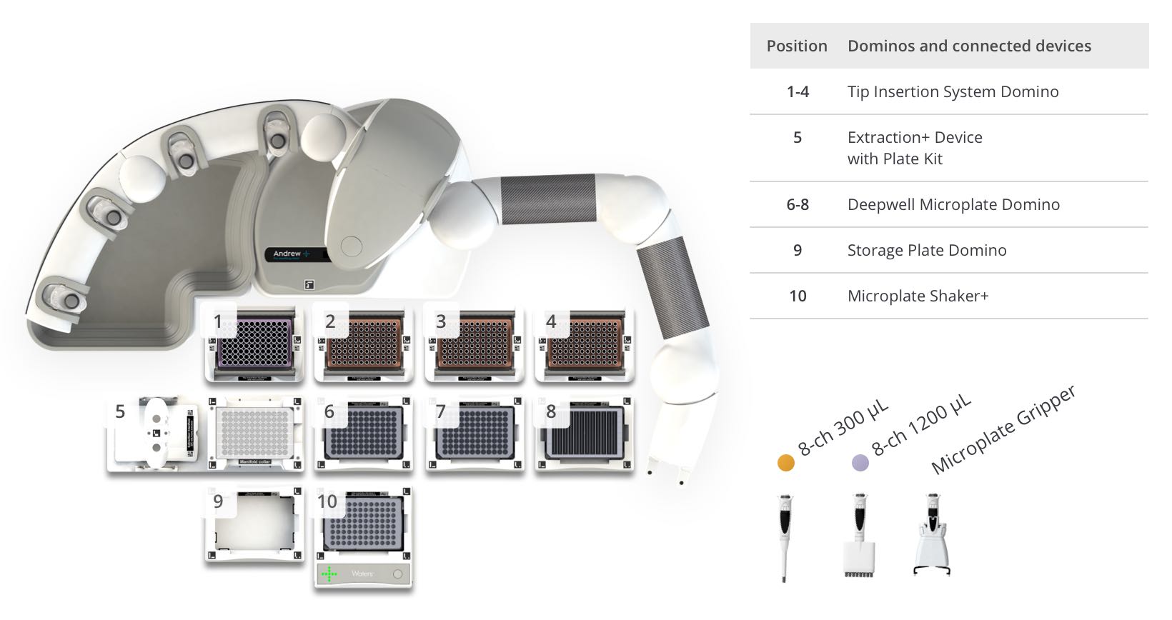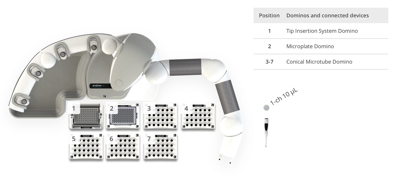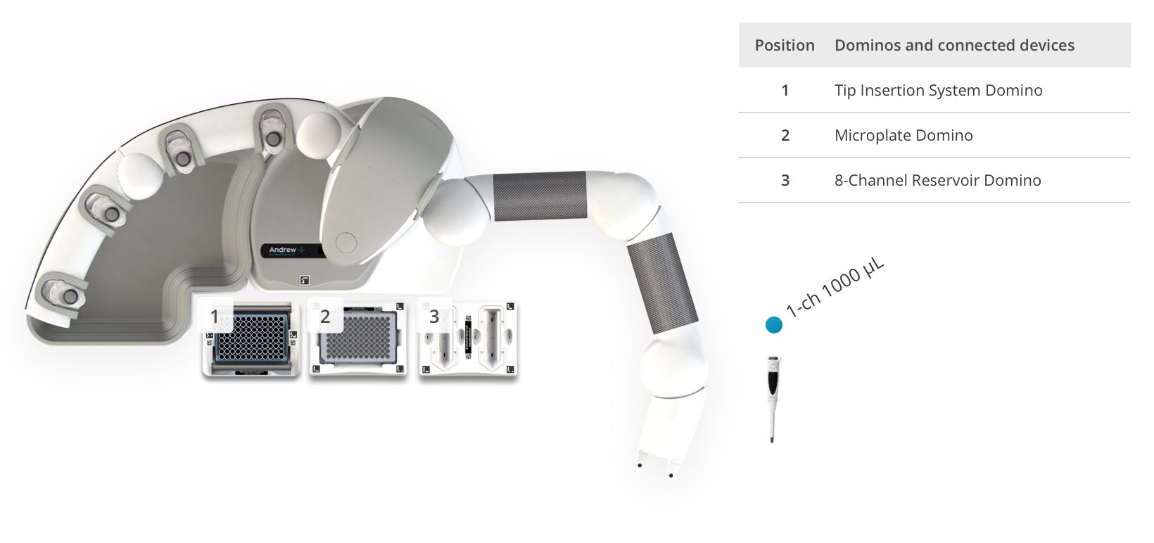 Andrew+ System Components: Dominos, Devices, Electronic Pipettes & Tips